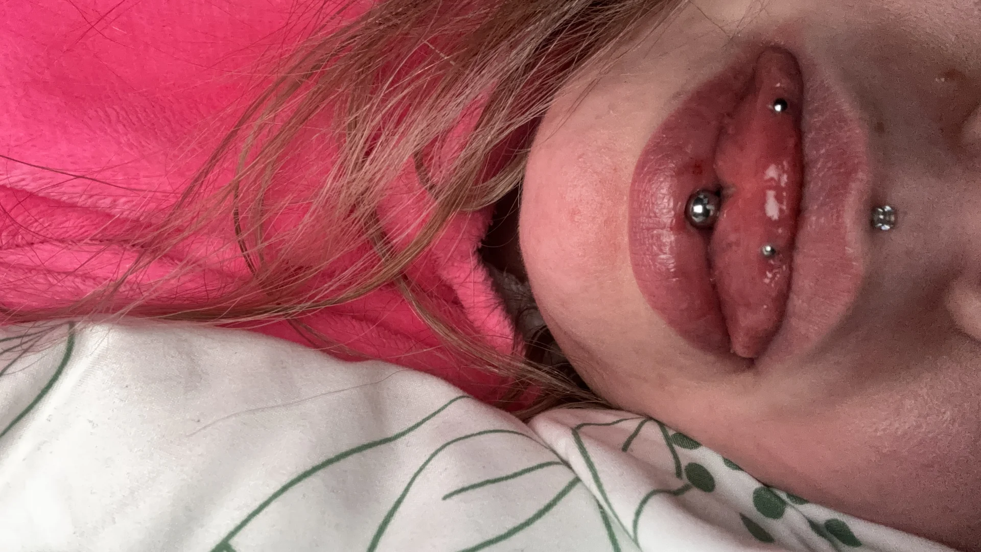 Curvy Darstellerin mit dicken Boobies und dicken Ass, die gepierct und tätowiert ist.